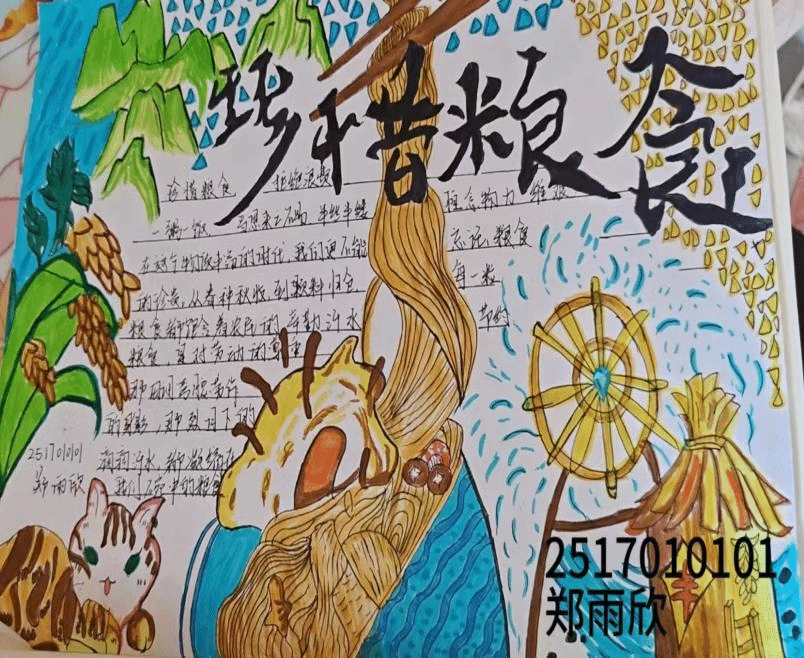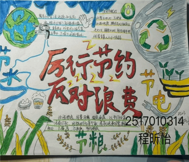 此次活动鼓励同学们查阅资料,梳理板块,以“勤俭节约”为核心并用水彩、蜡笔勾勒出来,内容简洁明了,插图生动形象,与主题深度契合。评委们根据活动主题、设计、内容三方面进行打分,将优秀作品进行展示,以弘扬节俭的中华美德,让更多同学参与其中。
