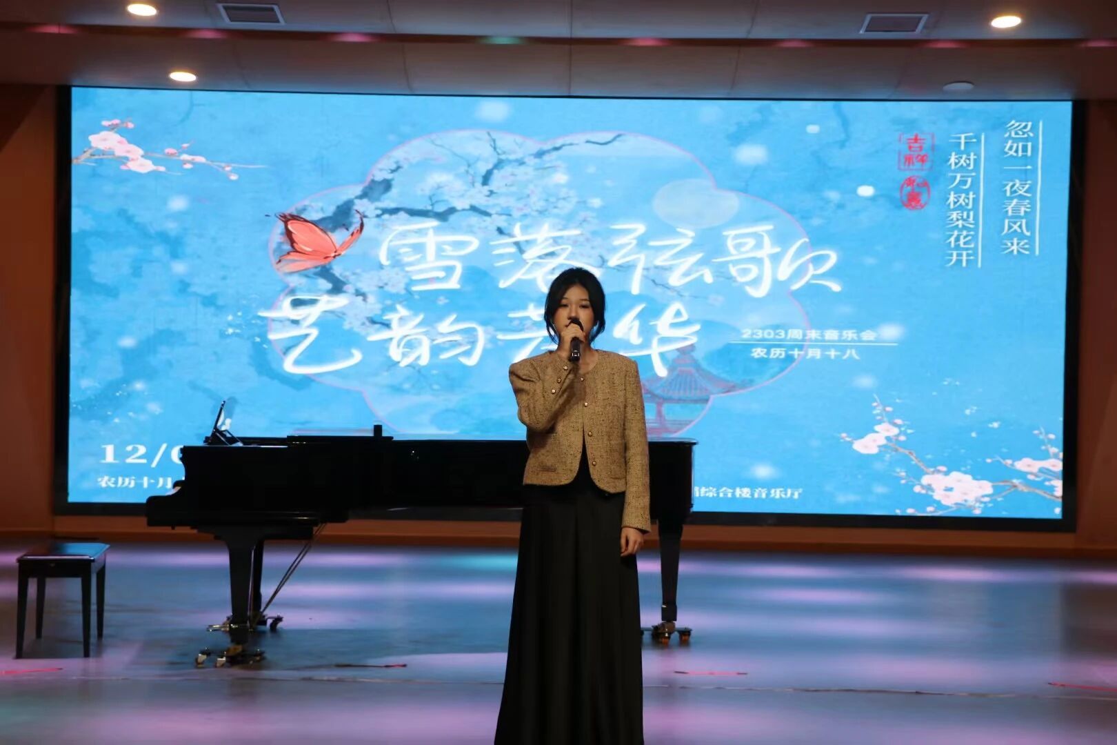 冬日初雪融诗意,琴音婉转颂芳华。12月7日,恰逢大雪节气,音乐学院2303班“雪落弦歌,艺韵芳华”周末音乐会在音乐舞蹈综合楼音乐厅温情奏响。